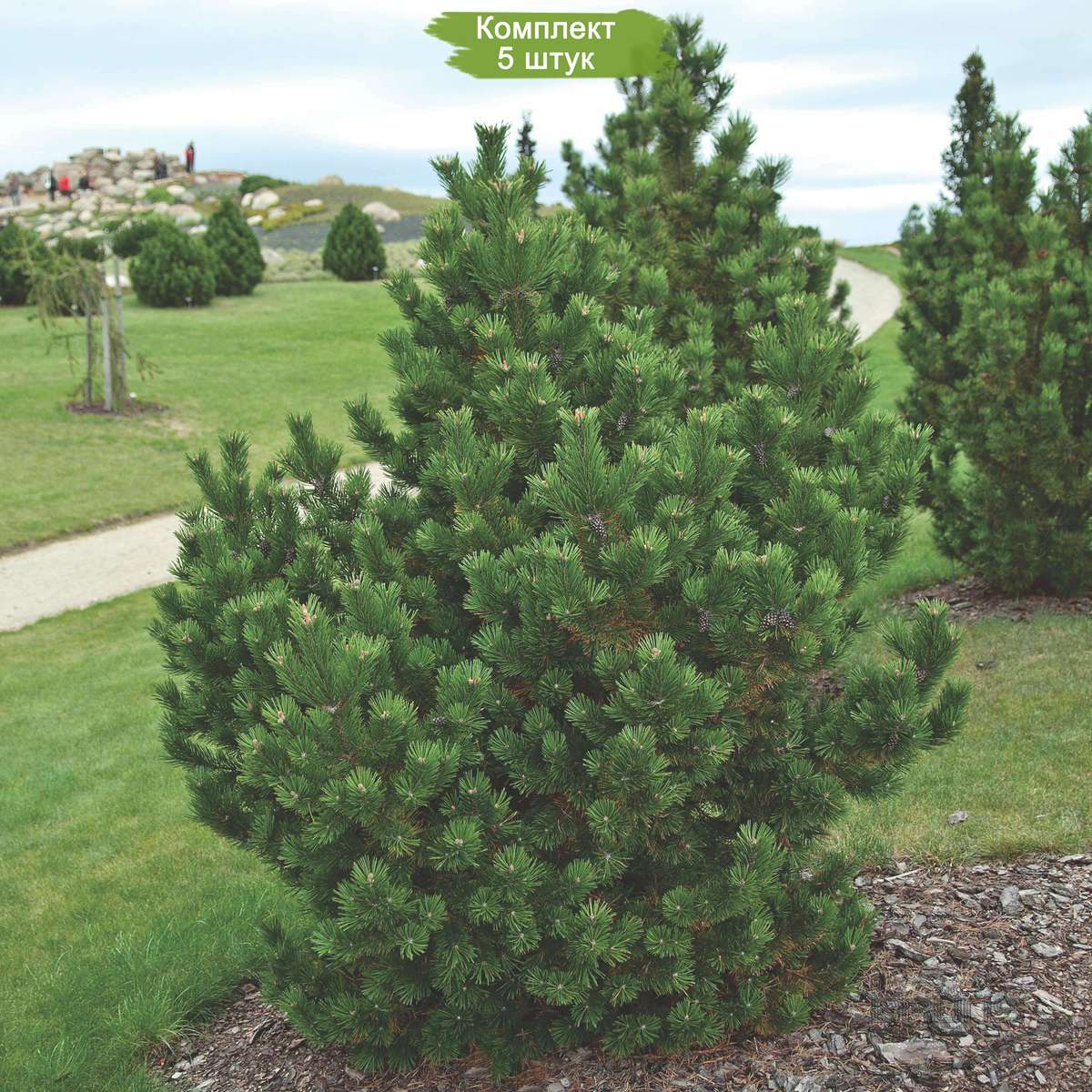 Приобретите комплект из 5 молодых сеянцев сосны горной, каждый из которых имеет высоту от 15 до 25 сантиметров. Сосна горная (Pinus mugo) - это вечнозелёное растение, прекрасно подходящее для создания живописных ландшафтов, альпийских горок и использования в качестве декоративного элемента в саду.
